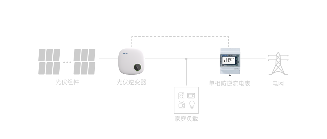 需要設備:光伏并網逆變器、防逆流電表、電表和逆變器之間的通訊線。這種方案適用于只有戶用光伏場景。